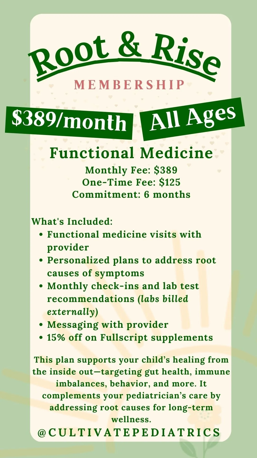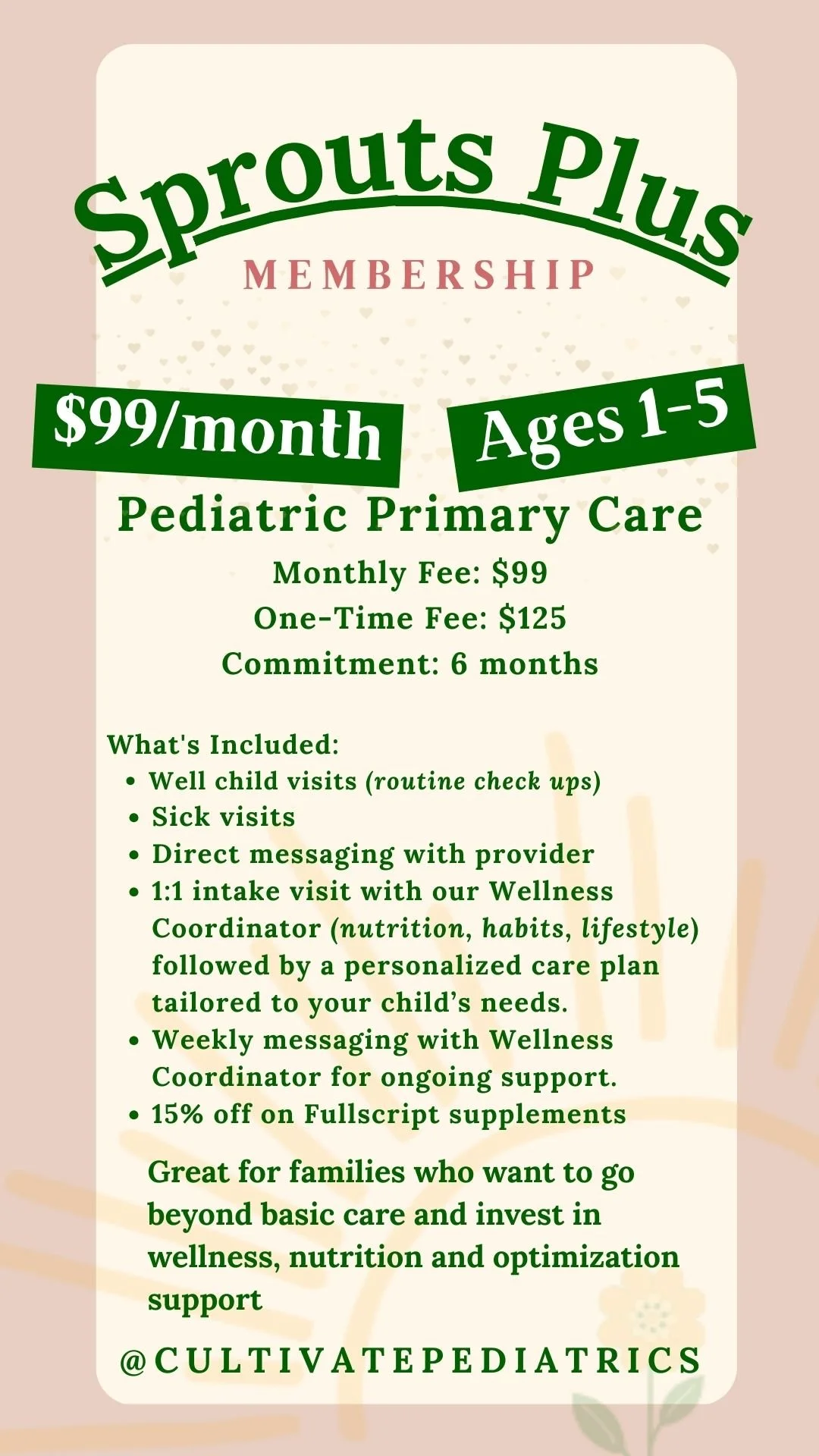 At Cultivate Pediatrics, we believe children deserve more than rushed visits and surface-level care. We're a membership-based pediatric practice combining traditional and functional medicine to address root causes, empower families, and support lifelong wellness.