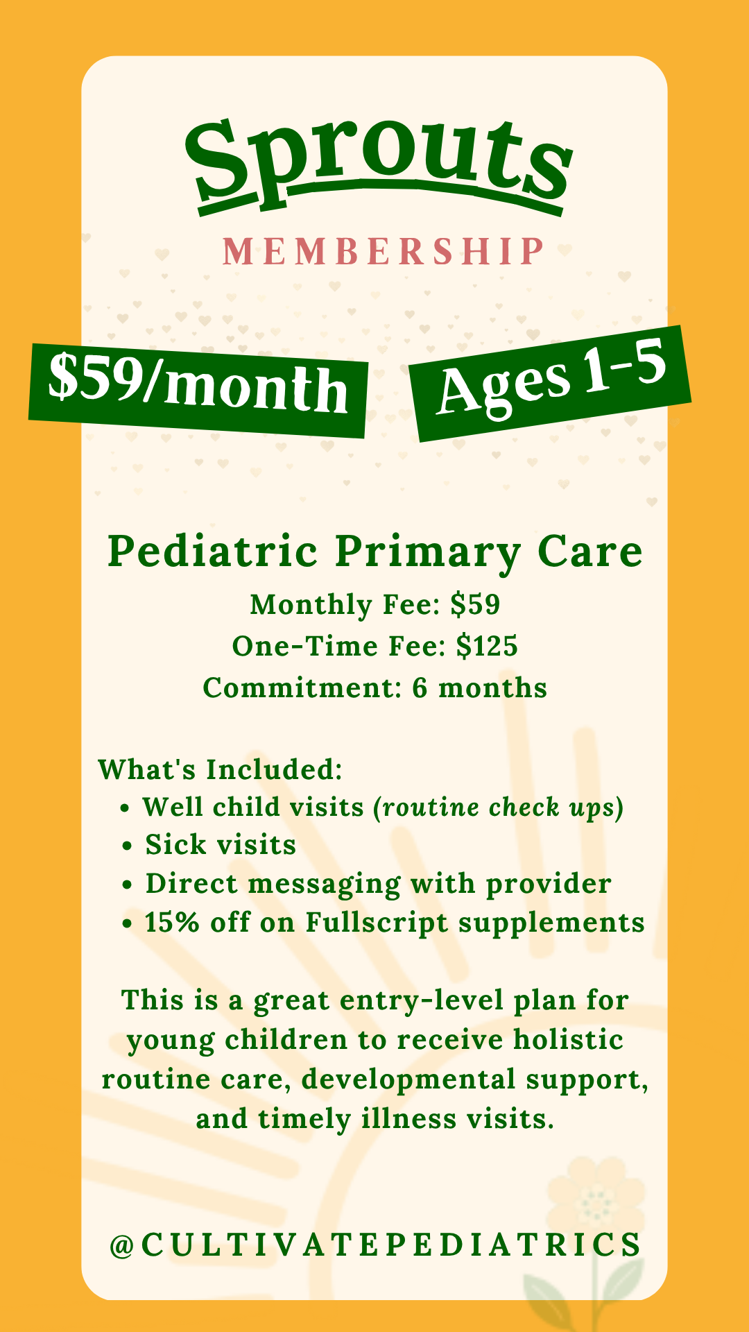 Primary Care Memberships: holistic well child checks, sick visits, and developmental guidance